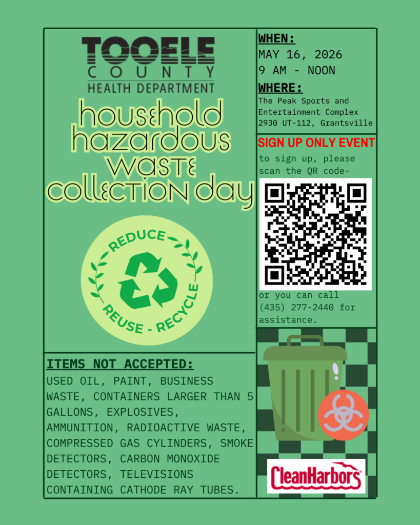 Please see below for other options to dispose of your household hazardous waste. For questions call 435-277-2440 or email eh@tooeleco.gov.