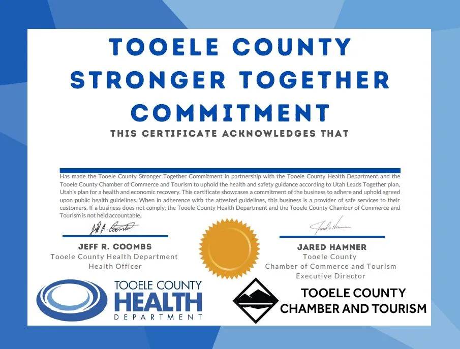 We invite you to join the Tooele County Stronger Together Commitment. While restrictions or recommendations may change, we want to let customers and visitors know that Tooele County businesses are open and that they go above and beyond to keep our communities safe; as well as healthy places to live, work, and visit.
